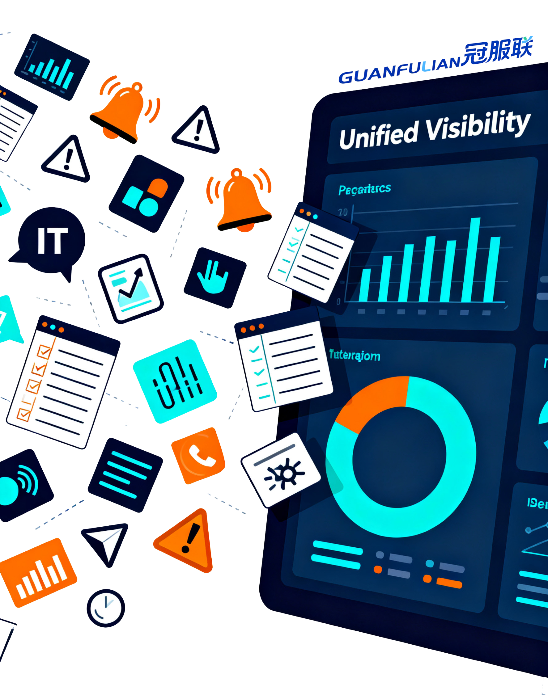 冠服联是一款集成化的企业管理平台:目前已上线ITAM、 ITOM、ITSM、 FSM四大核心模块 + AI 引擎,为企业提供全面的IT运维支持。通过统一的应用界面,企业能够高效地管理IT资源、优化运维流程、提升服务质量,确保IT系统在整个生命周期内的高可用、稳定与高效。